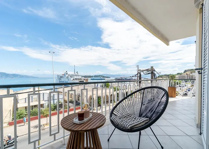 快適な雰囲気の寝室1室のLa Mer #2 コルフ島アパートはニュー フォートレスとAgia Theodora Mitropolis Orthodox Cathedralほんの数分に位置し、海の景色を望めます。 ビジネスとレジャーの両方の目的でWi-Fiを利用できます。